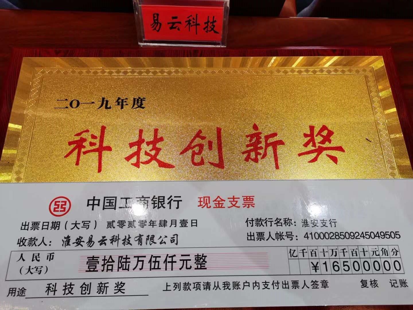 2020年4月1日,公司受邀參加淮安經(jīng)濟(jì)技術(shù)開發(fā)區(qū)經(jīng)濟(jì)發(fā)展大會,易云公司榮獲淮安淮安經(jīng)濟(jì)技術(shù)開發(fā)區(qū)2019年度科技創(chuàng)新獎、中國淮安軟件園新銳企業(yè)獎。在政府及園區(qū)的大力支持下易云公司將大步向前,爭創(chuàng)新的輝煌!