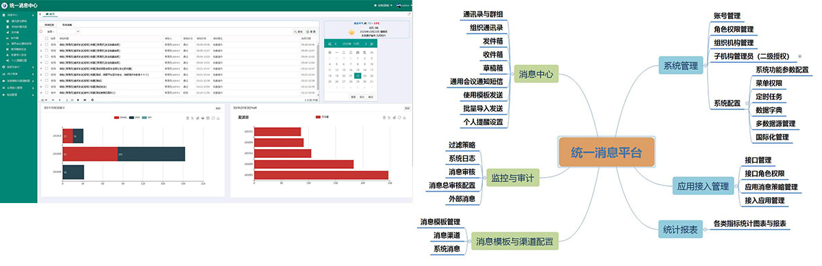 平臺實現(xiàn)了消息收發(fā)、消息審核、消息發(fā)送量配額、消息通道及使用權(quán)限管理、消息內(nèi)容安全篩查、多級權(quán)限管理、各類指標(biāo)統(tǒng)計報表等服務(wù)功能,并且各類功能均支持靈活可配置式的管理。